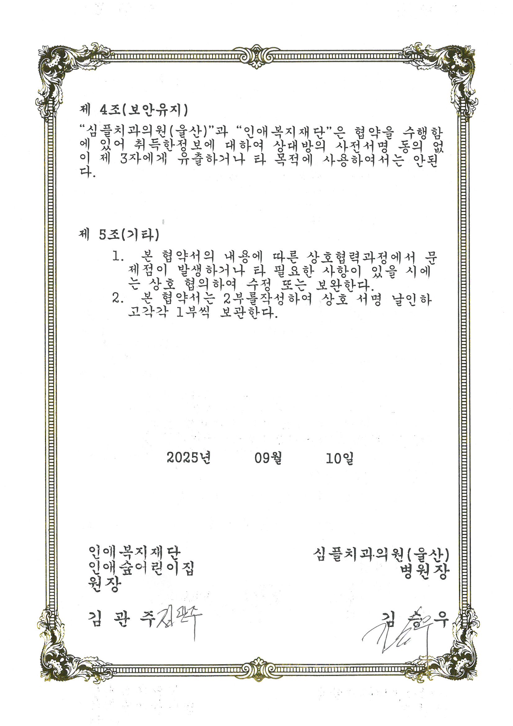 인애복지재단과 심플치과의원 진료협약 체결